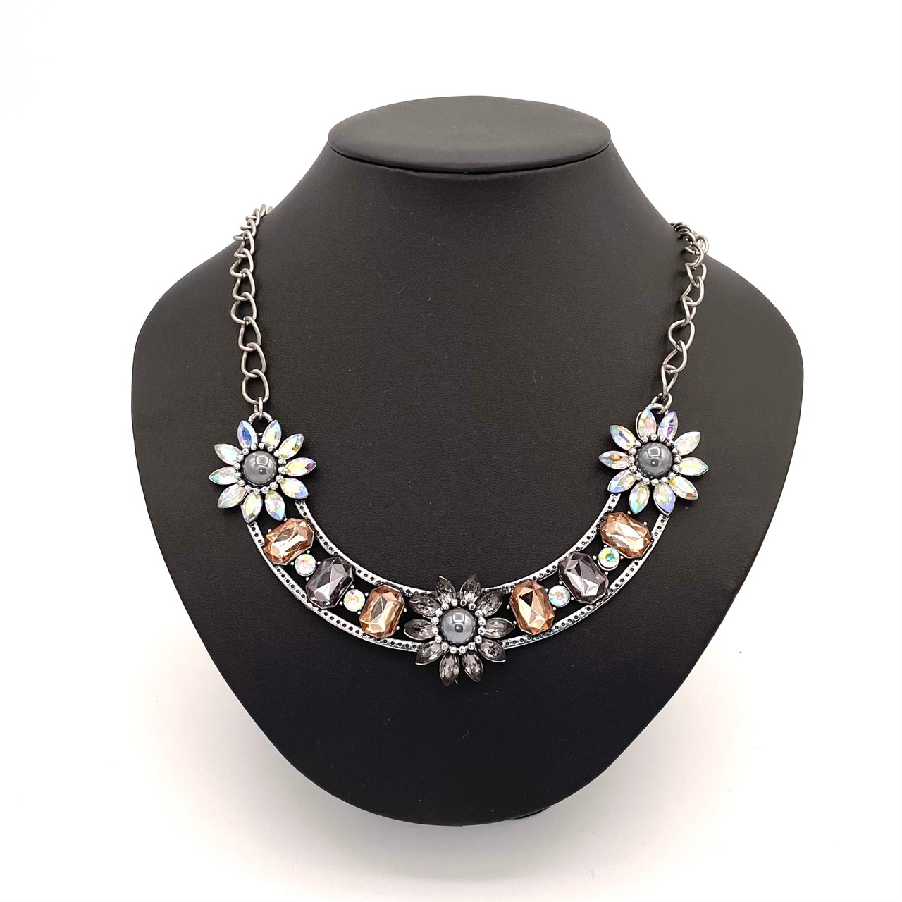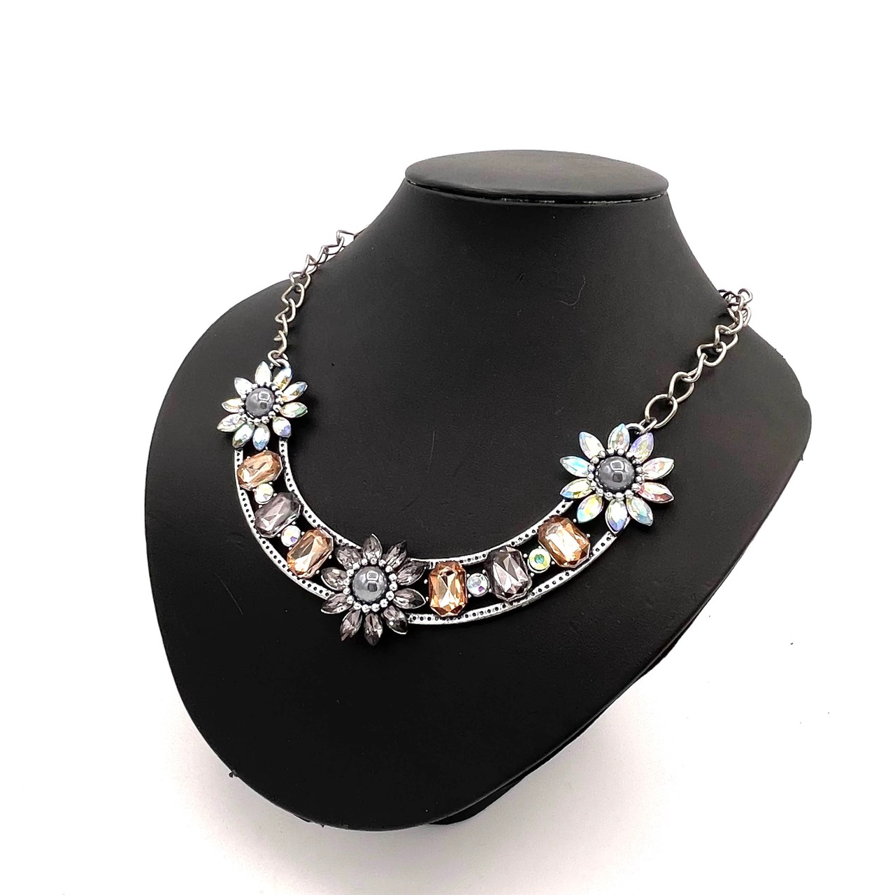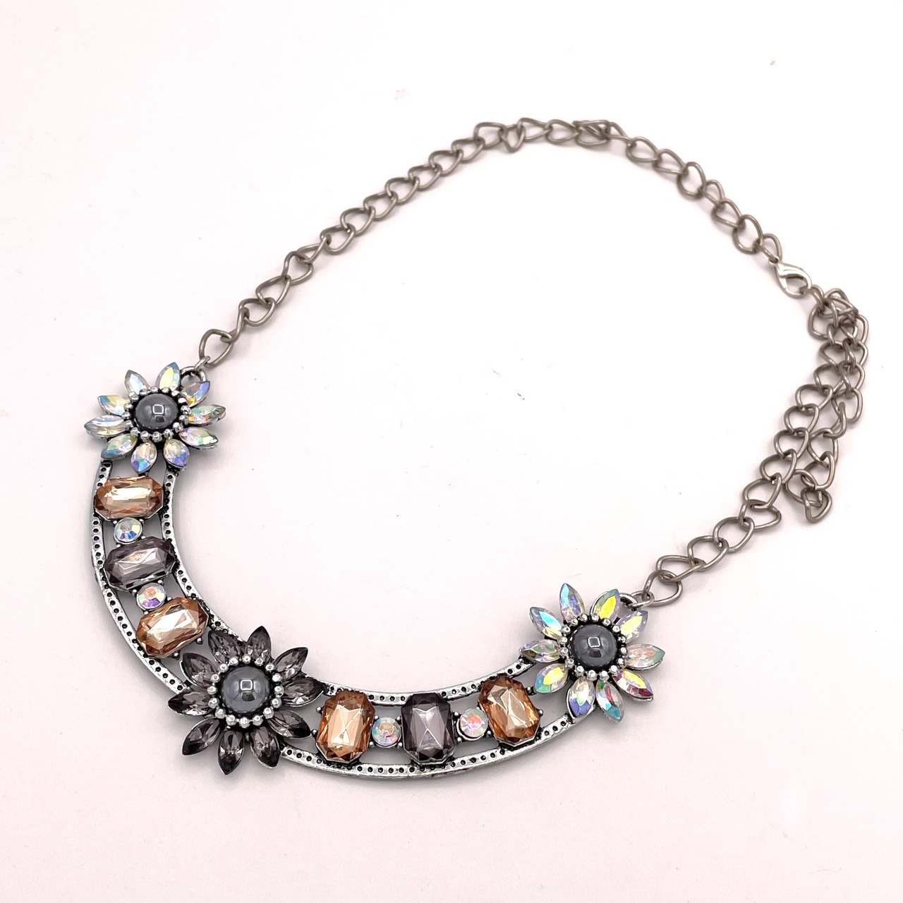メタルカラーにシックなトーンのカットビジューを合わせた、大人っぽいネックレス。