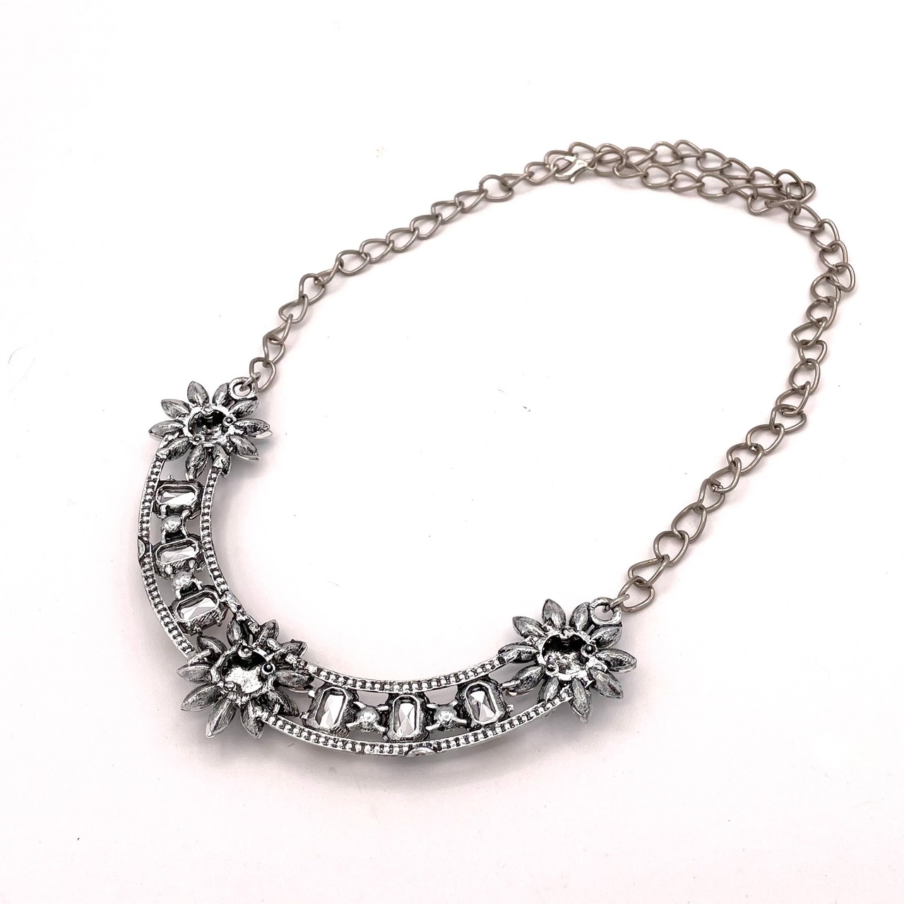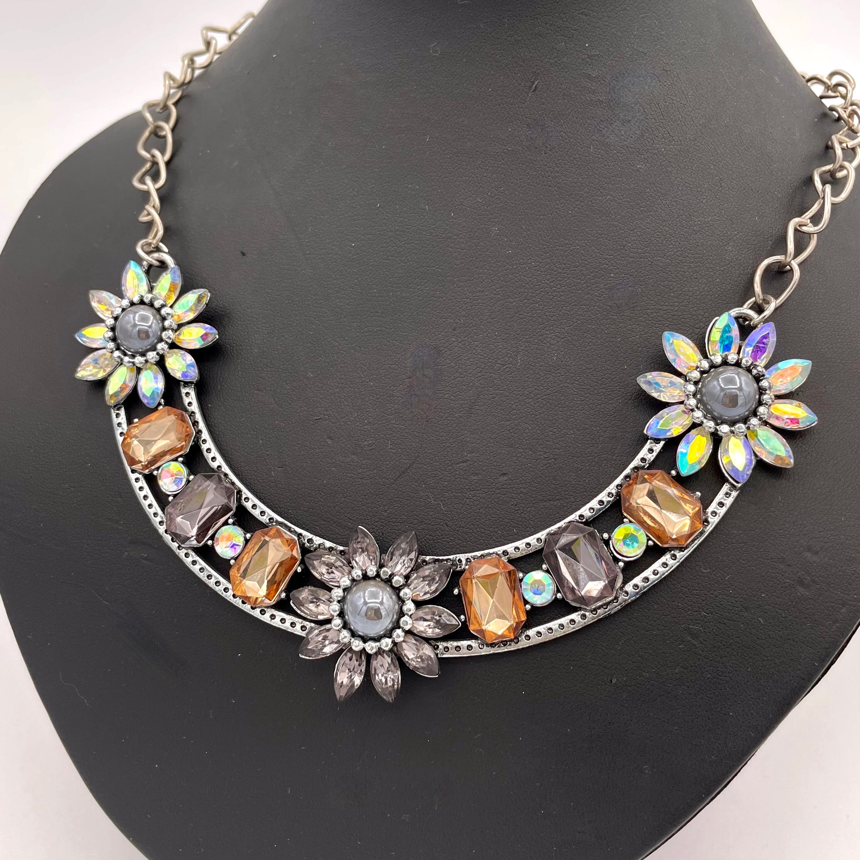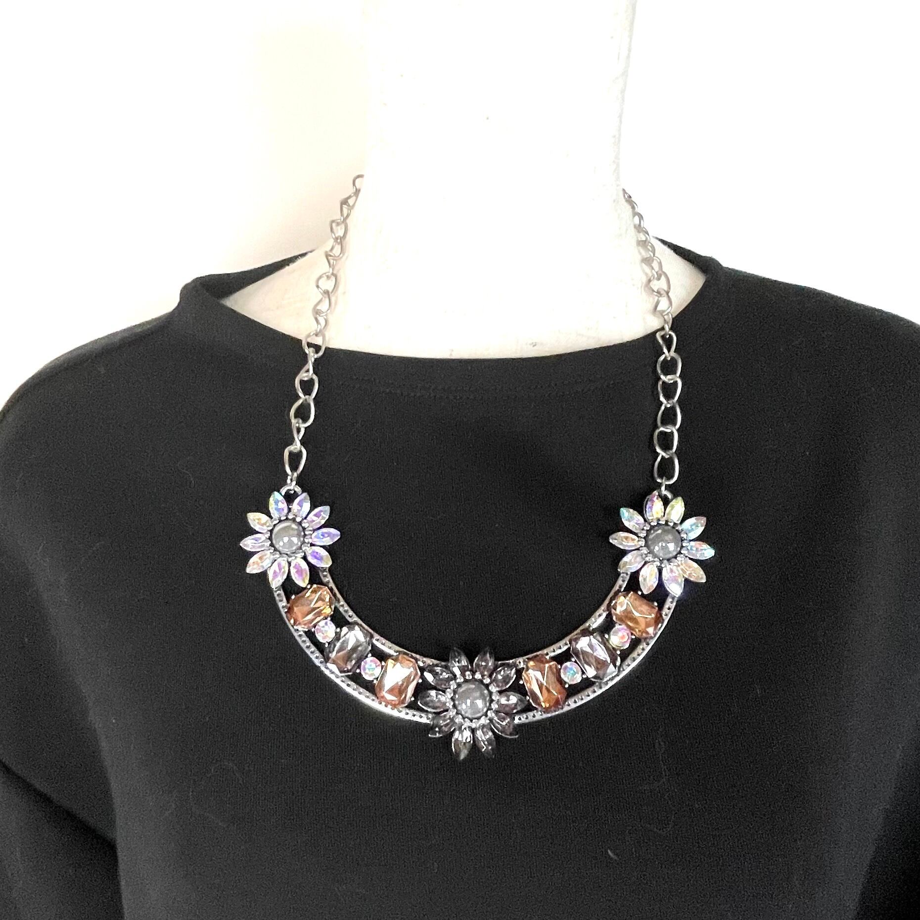 メタルカラーにシックなトーンのカットビジューを合わせた、大人っぽいネックレス。