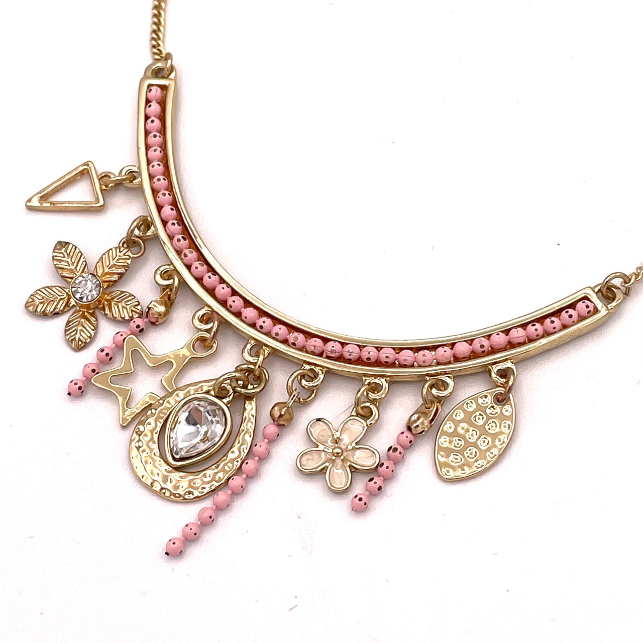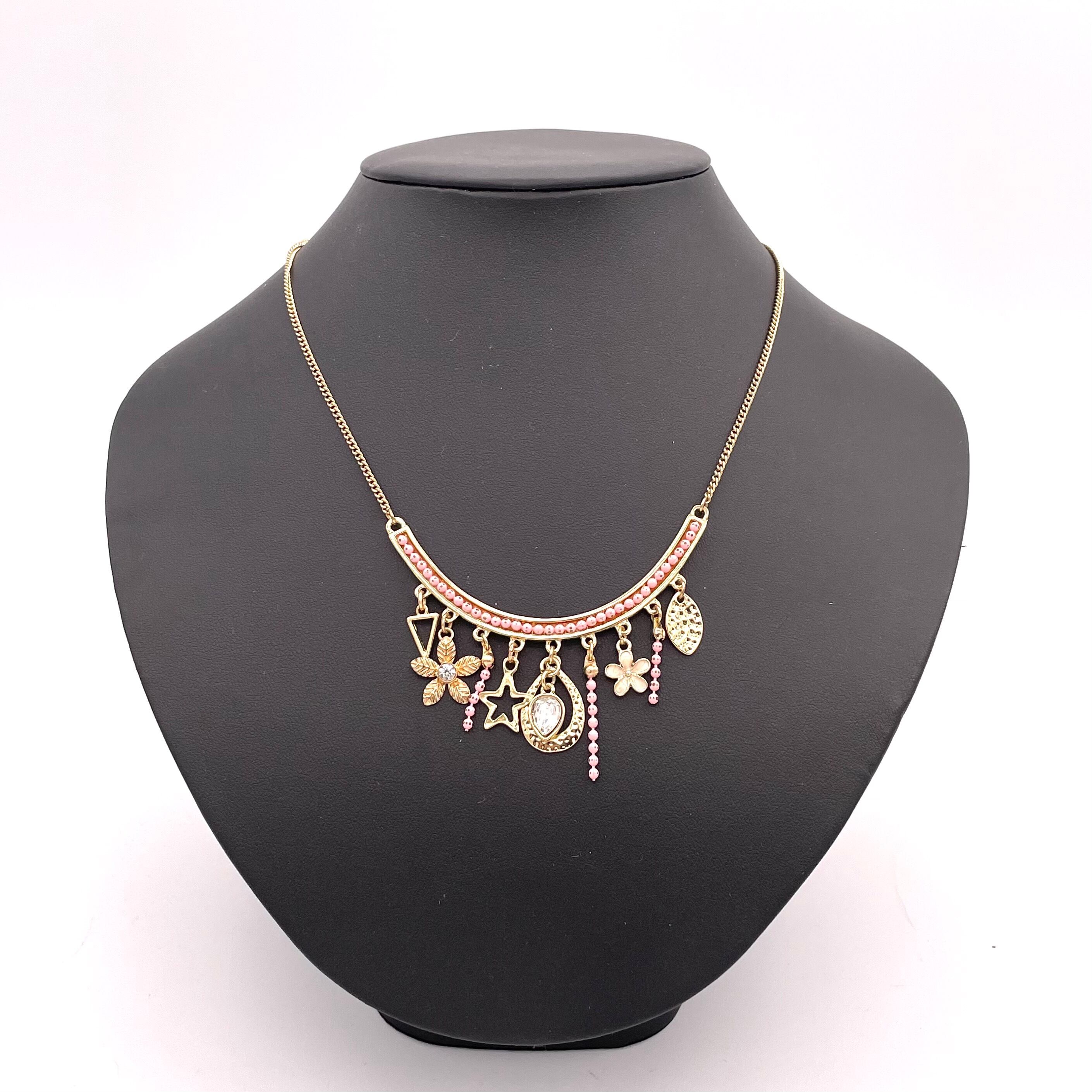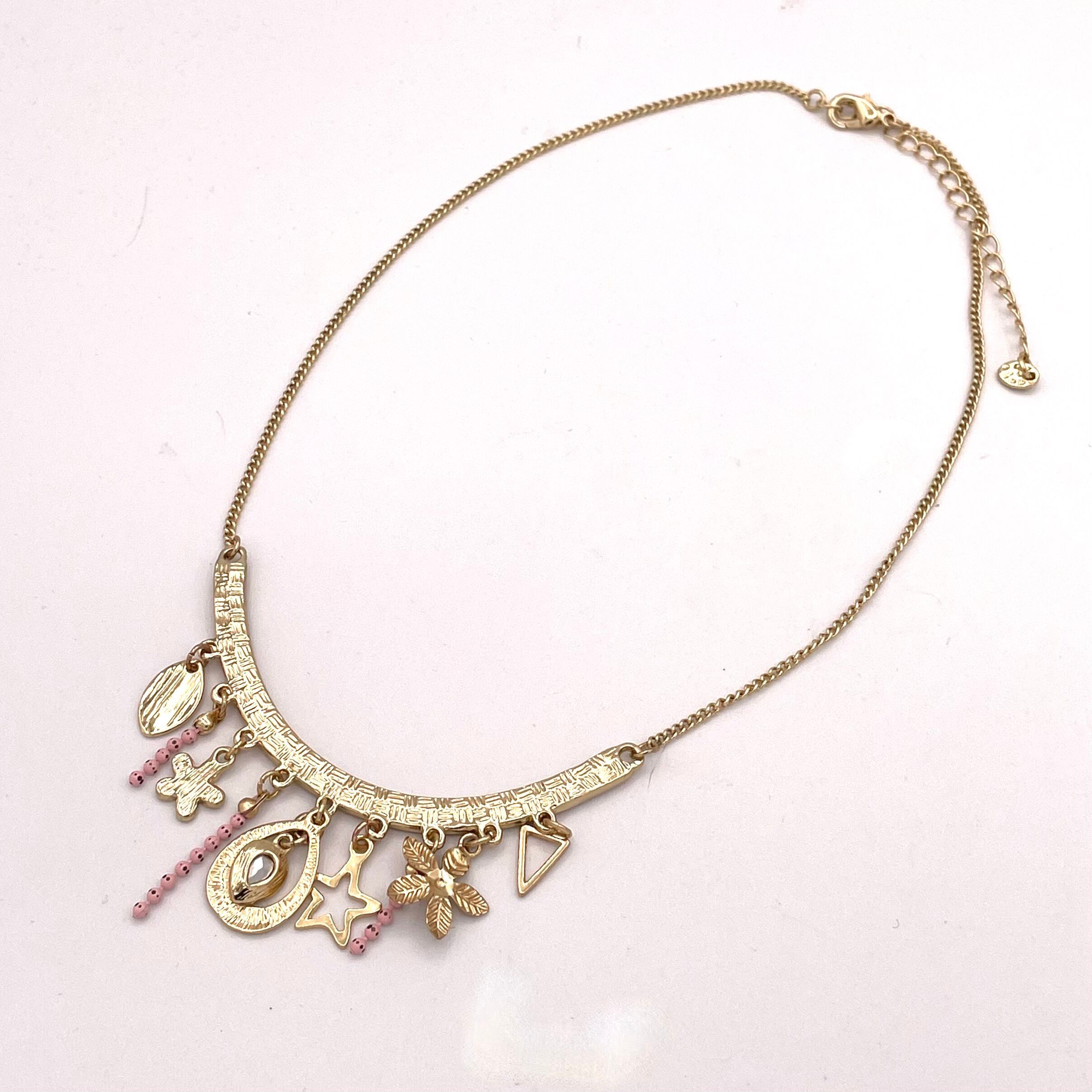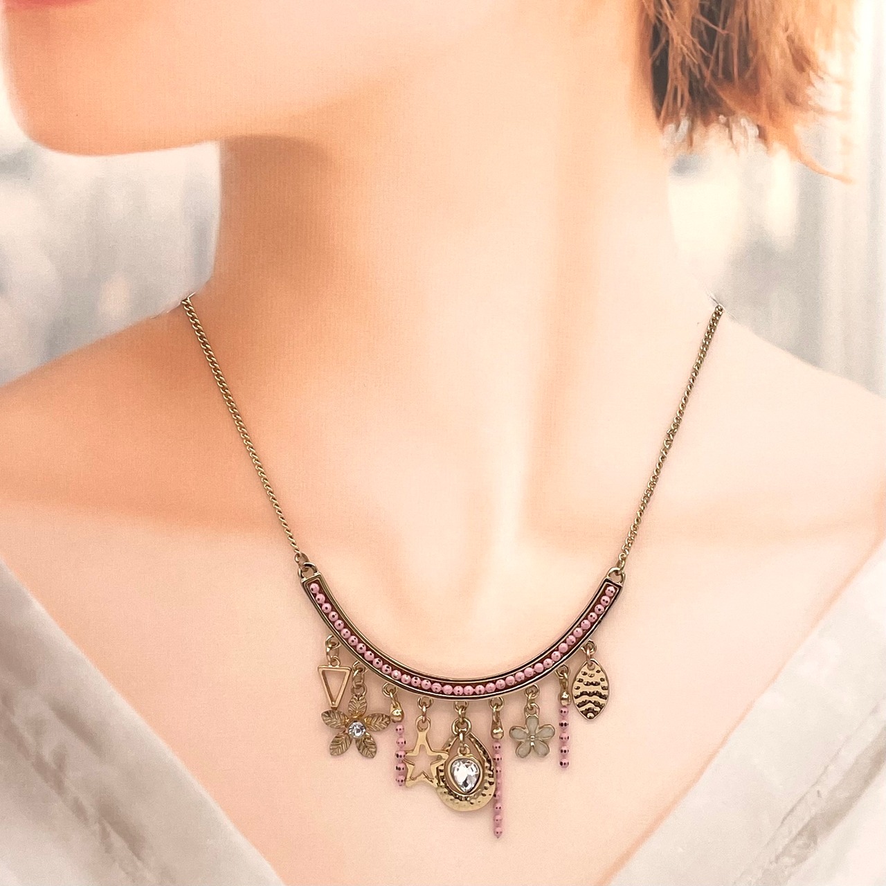 9つの可愛いモチーフが揺れる、キュートなネックレスです。