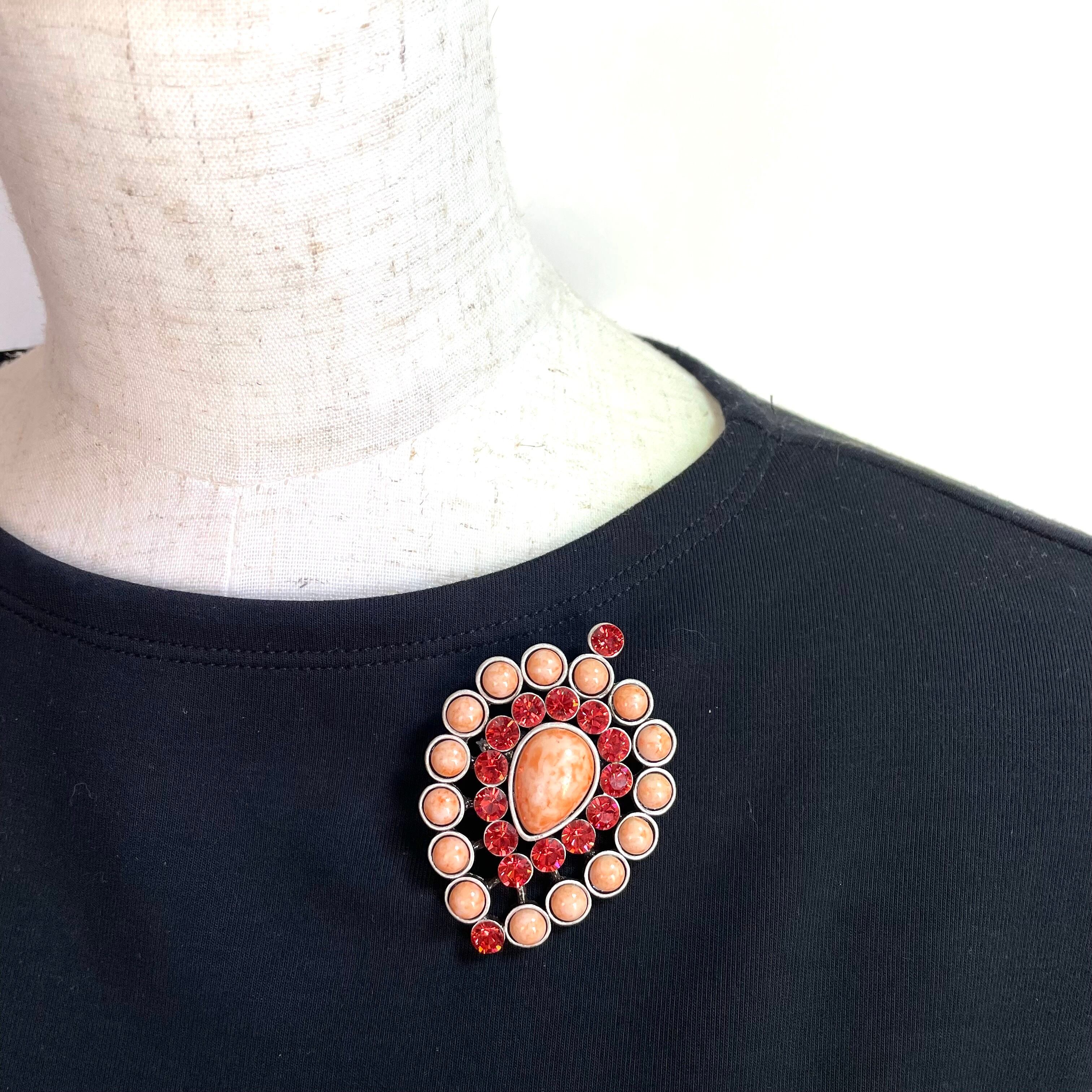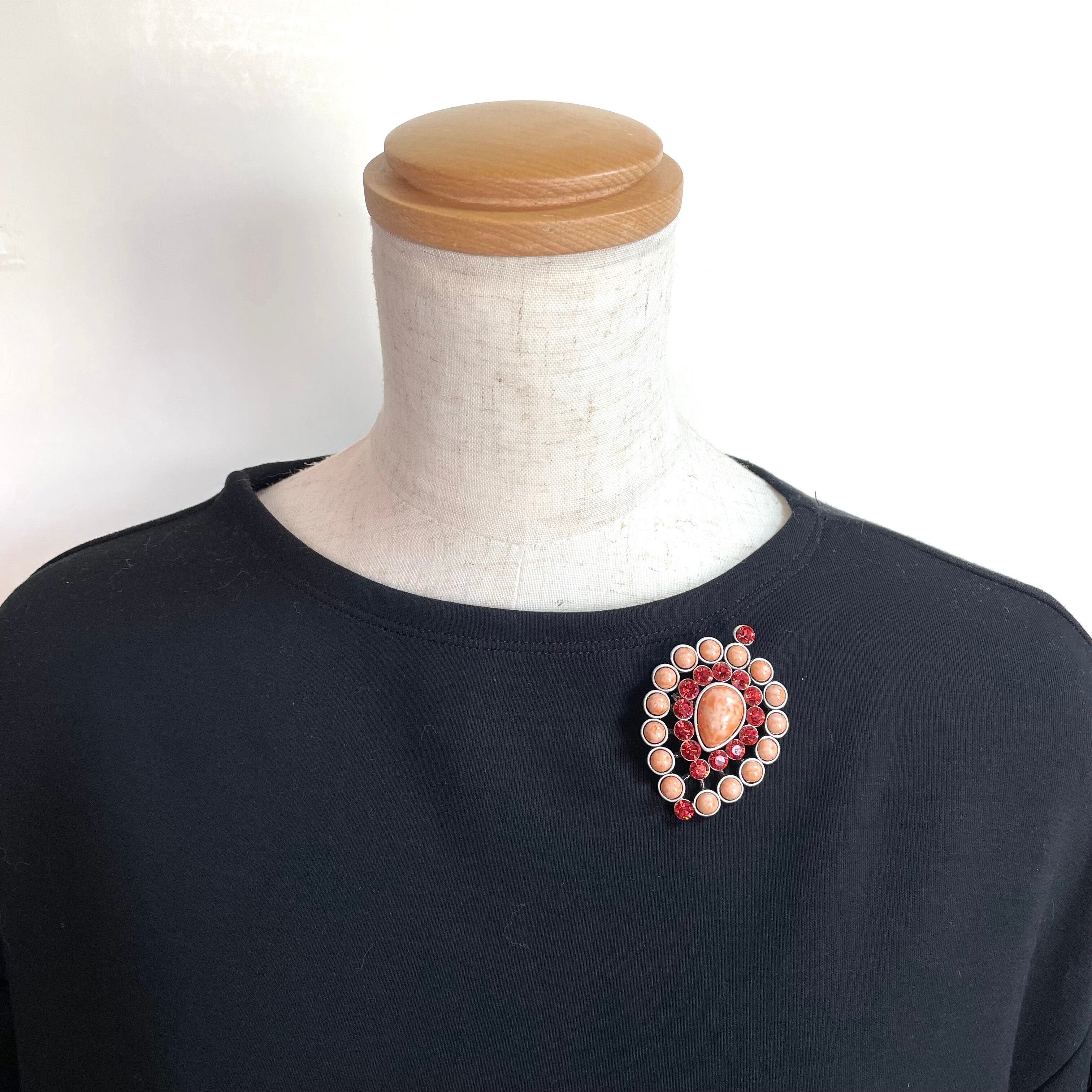 艶やかなオレンジカラーのストーンと、乳白色のオレンジのマーブルストーンの対比が美しいブローチ。