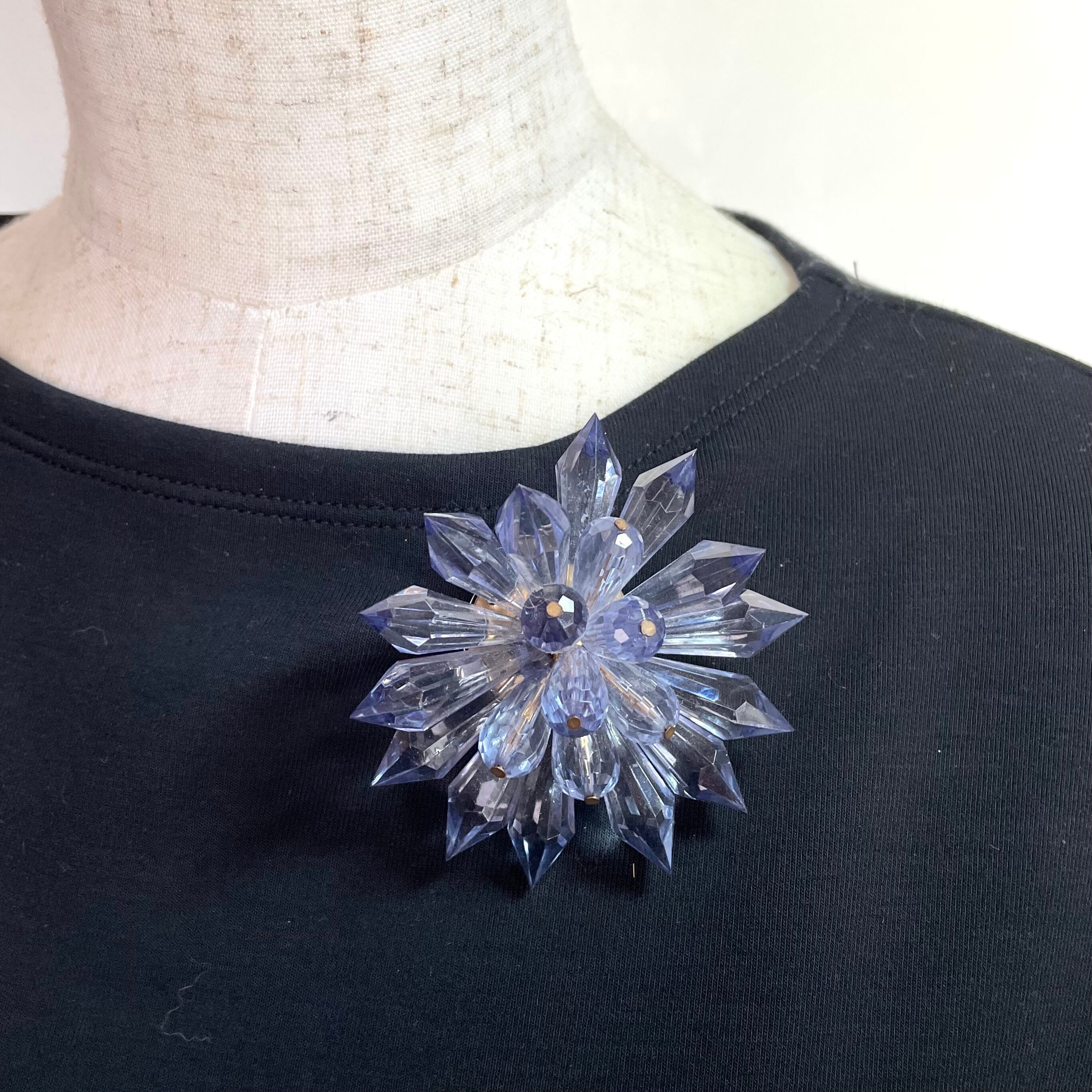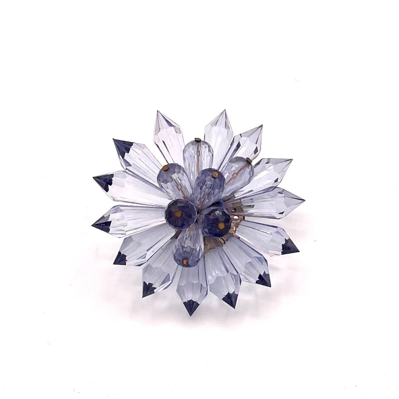 まるで氷の花が咲いたように輝く、クリスタル調ブローチ。