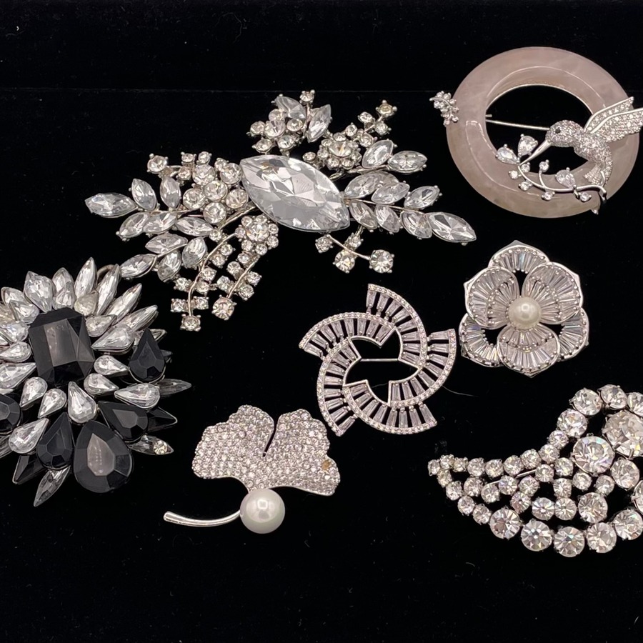 まるで光の粒を集めたように、胸元で凛と輝くクリスタルブローチです。